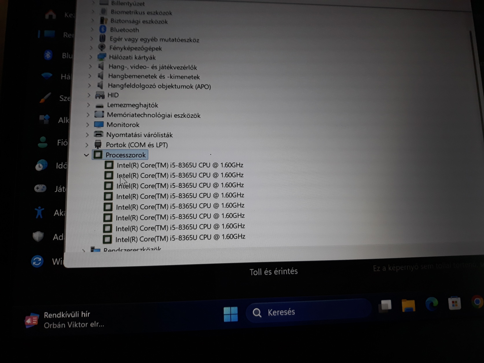 Processzor: Intel Core i5-8365U (8. generáció)
