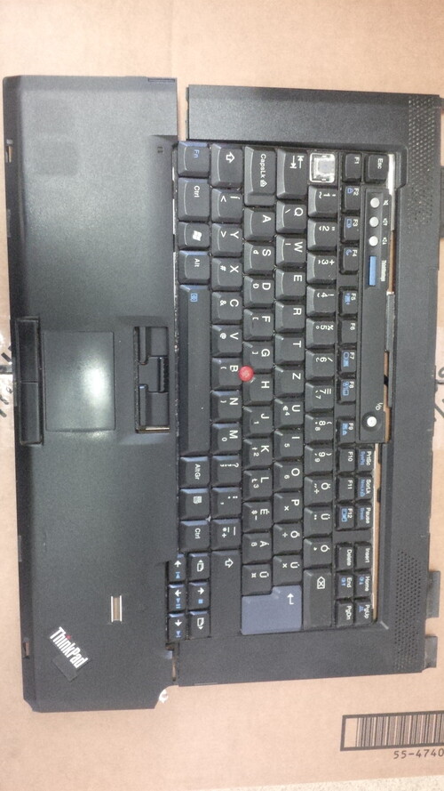- Palmrest néhol törött, keyboard bezel egyik csavar tartó füle le van törve, de megvan