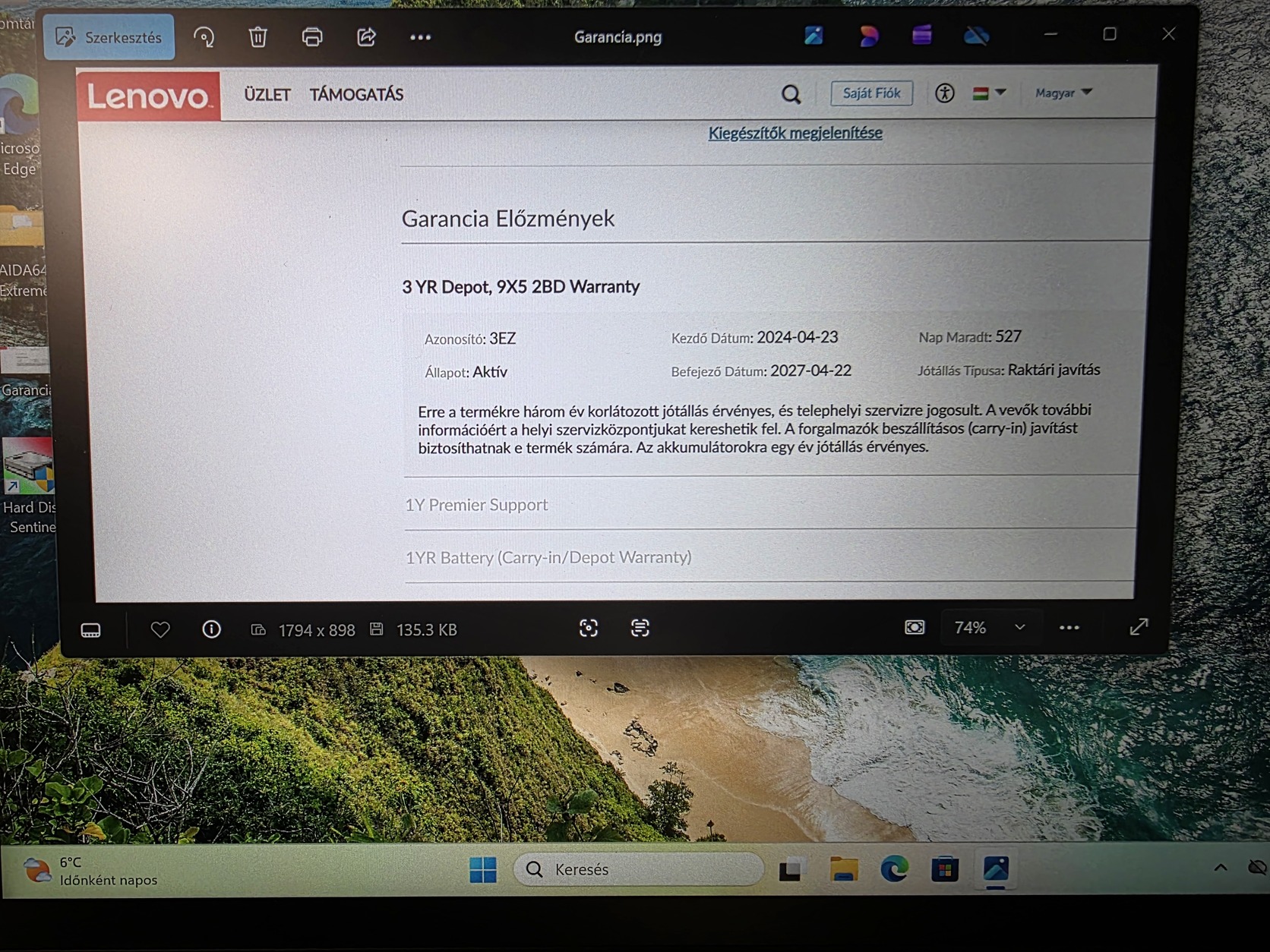 Lenovo gyári garancia 2027.04.22-ig