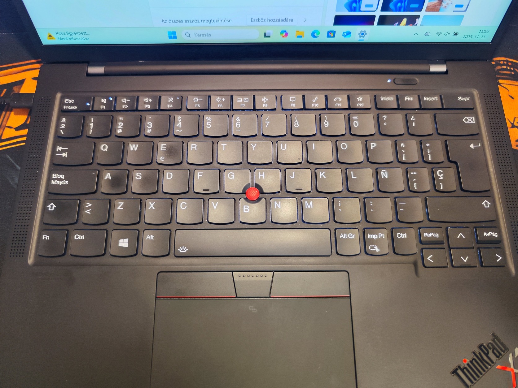 Billentyűzete spanyol, de EU kiosztású, tehát teljesen megegyezik a magyar kiosztással.