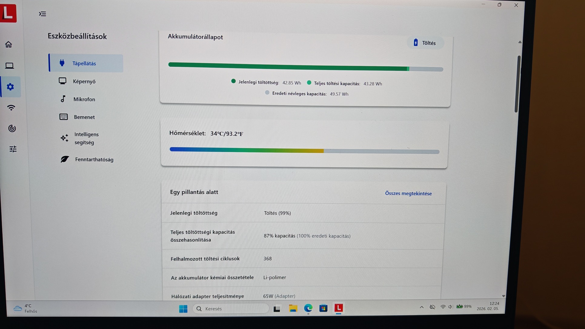 Gyári 65W töltővel.