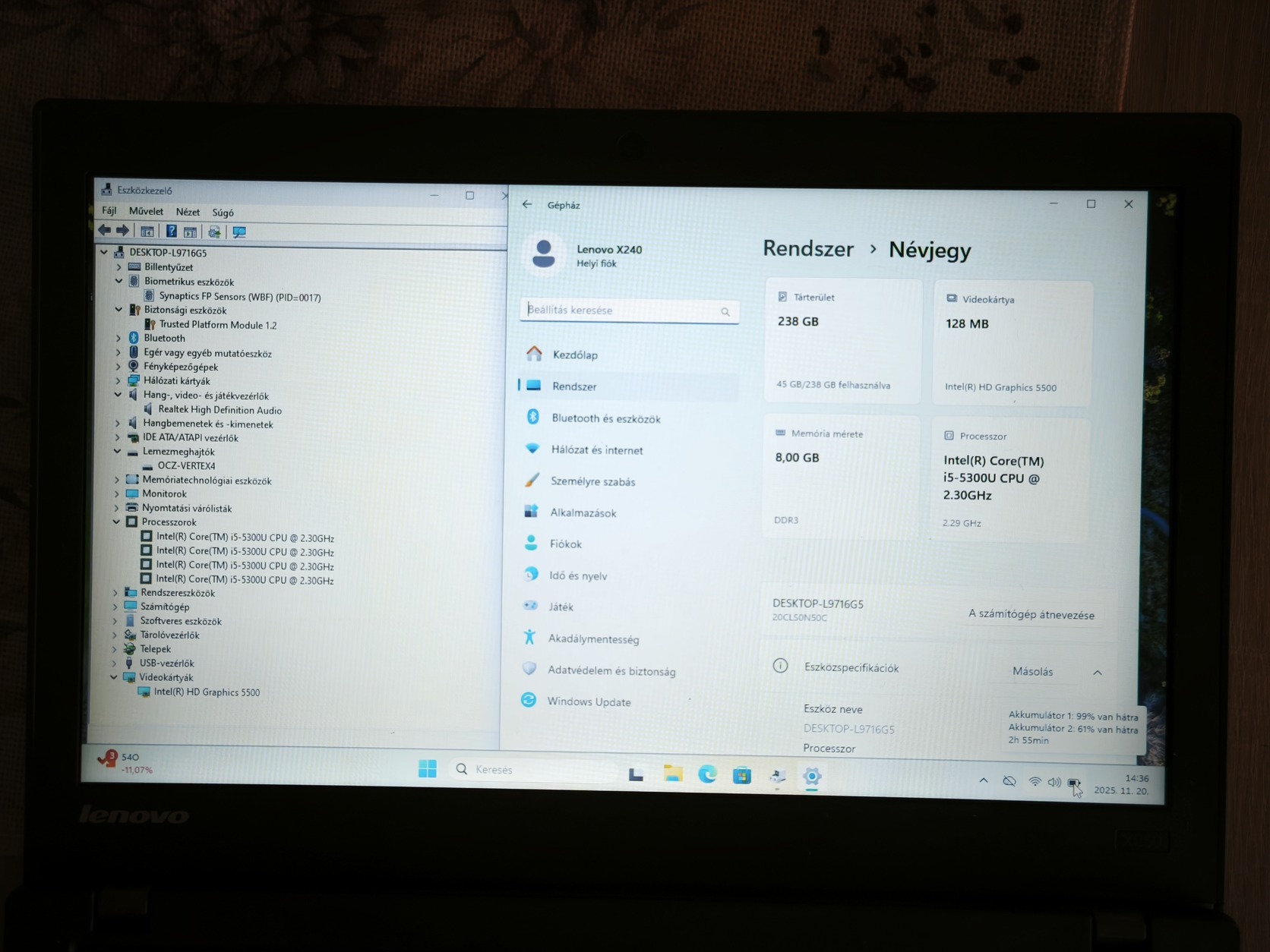 Win11Pro, minden driver fent, mindkét AKKU jó! BIOS ZÁROLT, USB-ről lehet másik Oprendszert telepiteni, Particiós séma: MBR, Célrendszer: Bios(vagy UEFI-CSM)