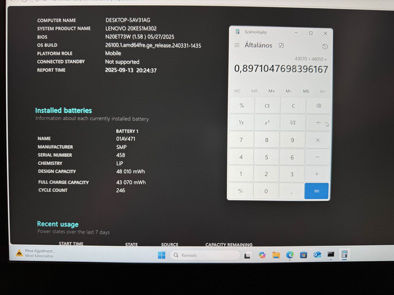 Az akkumlátor kb. 89% ahogy az az egyik képen látható.