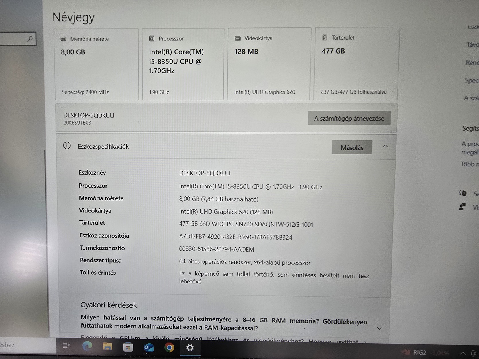 Háttértár: 512 GB SSD (WDC WDC PC SN720 NVMe)