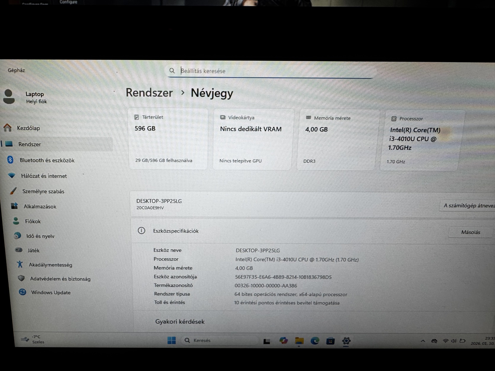 Eladó a fent látható gép csak alkatrésznek vagy bontásra. A gép bekapcsol, windows fel ment rá. A gép beázott elég rendesen, viharvert állapotban van. Akkumulátor kuka, töltő nincs. Gari nincs.