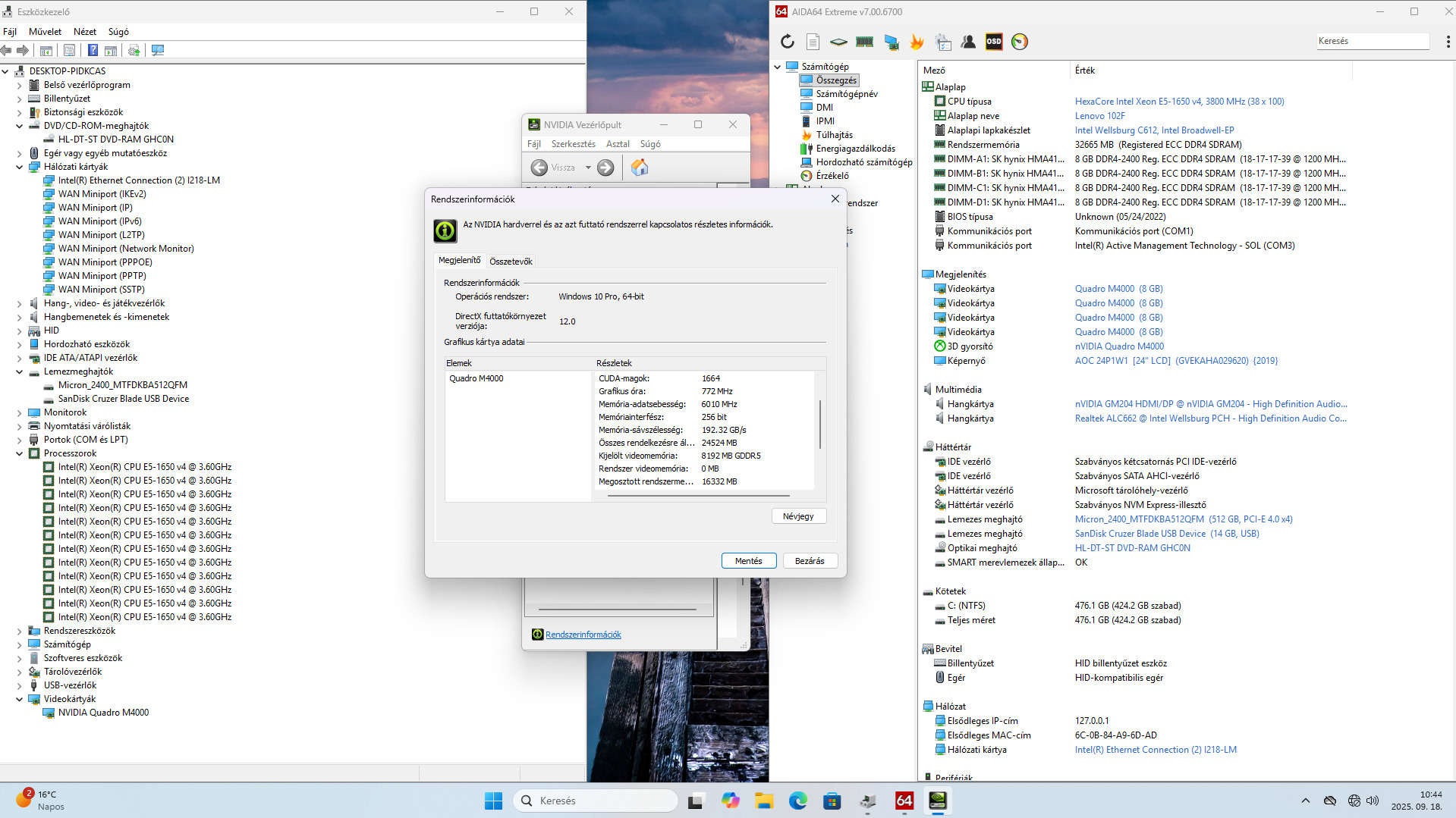- Videokártya: Nvidia Quadro M4000 8GB GDDR5 256bit