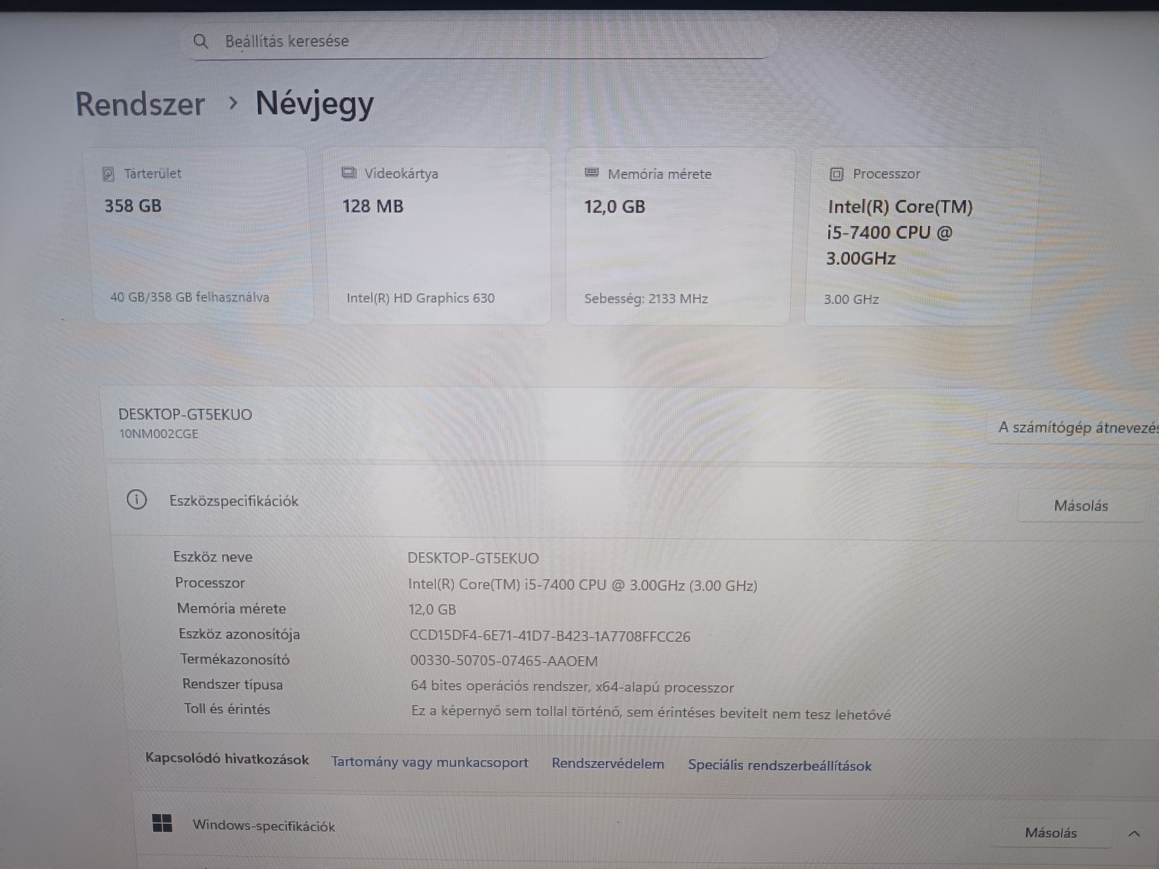 Windows 11pro telepítve, hivatalos kulcs a BIOS-ban....