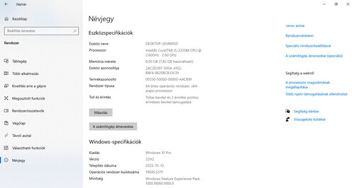 - Operációs rendszer: Windows 10 Pro