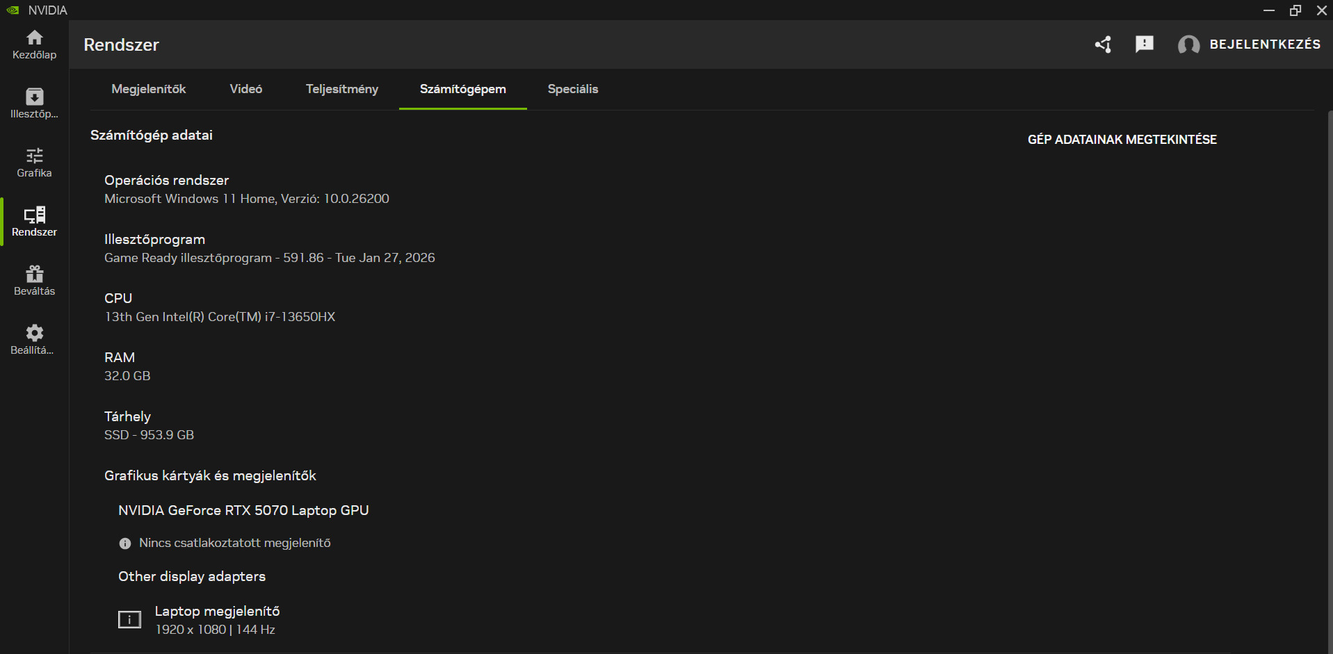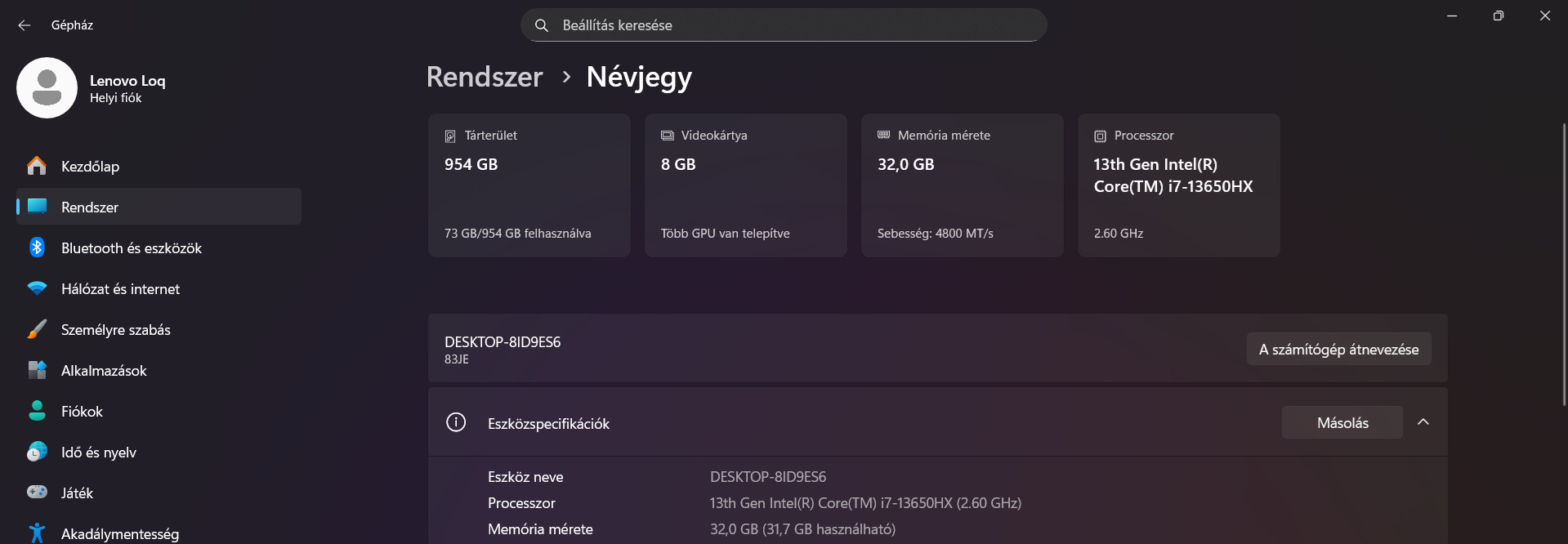Operációs rendszer: win 11