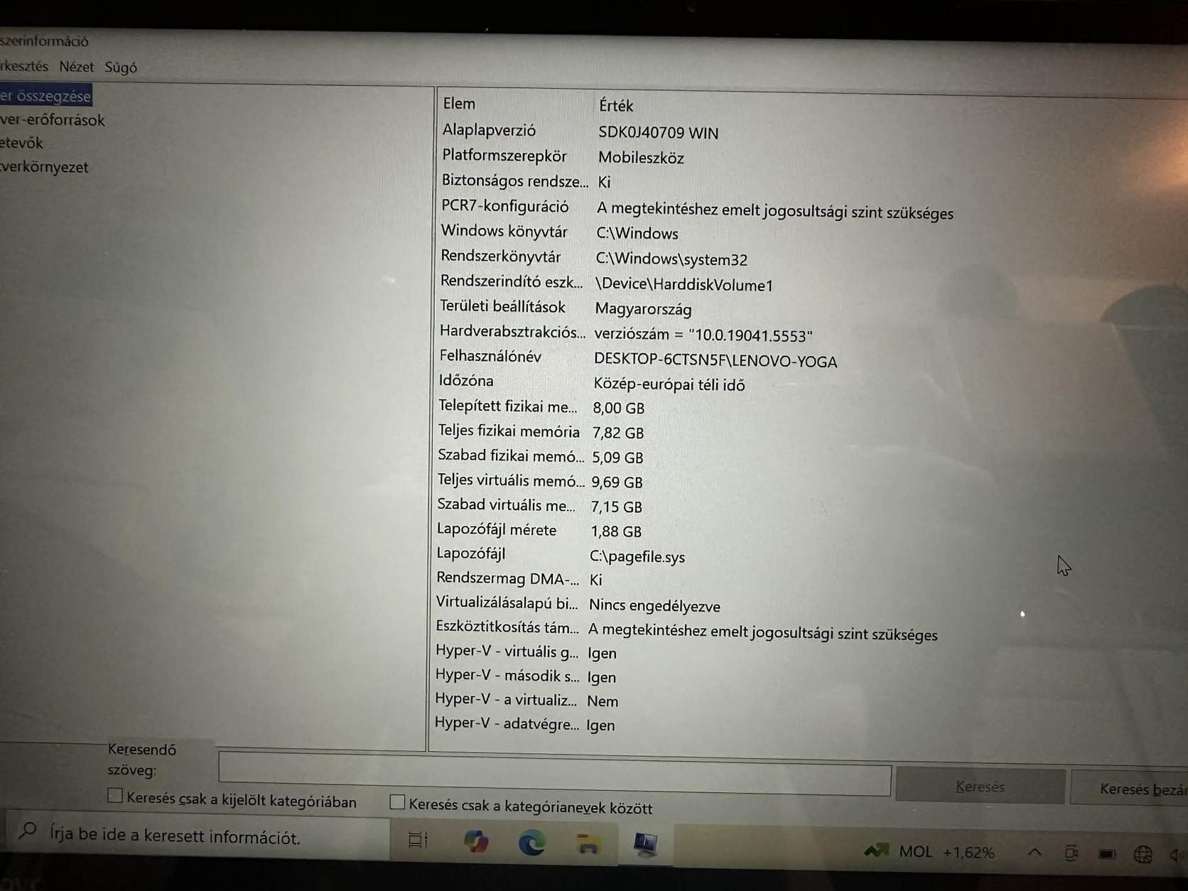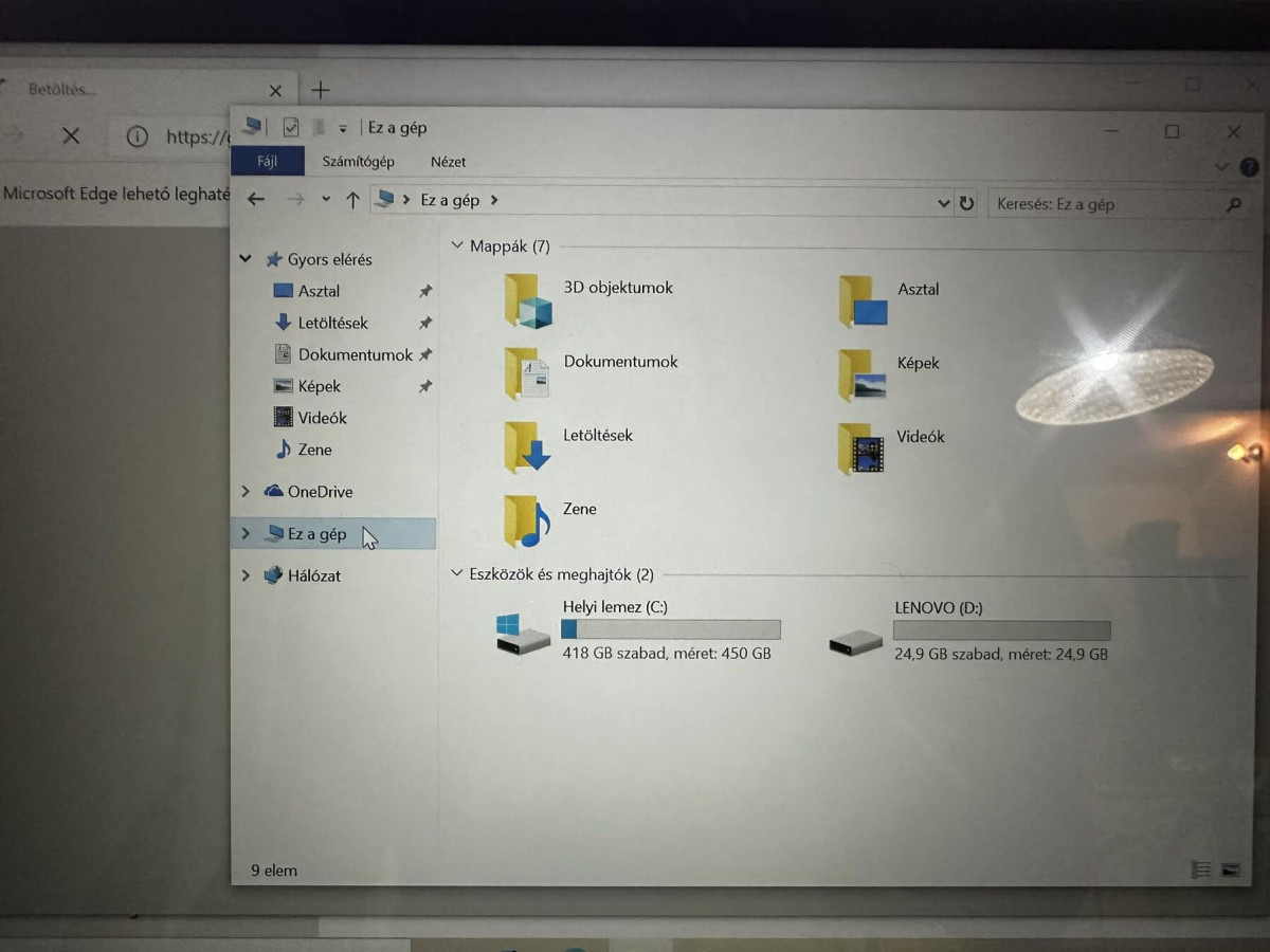 Windows 10, a tároló hely 450GB tárhely és 8 GB ram