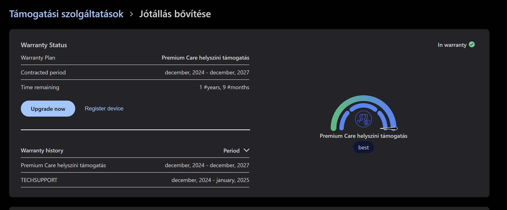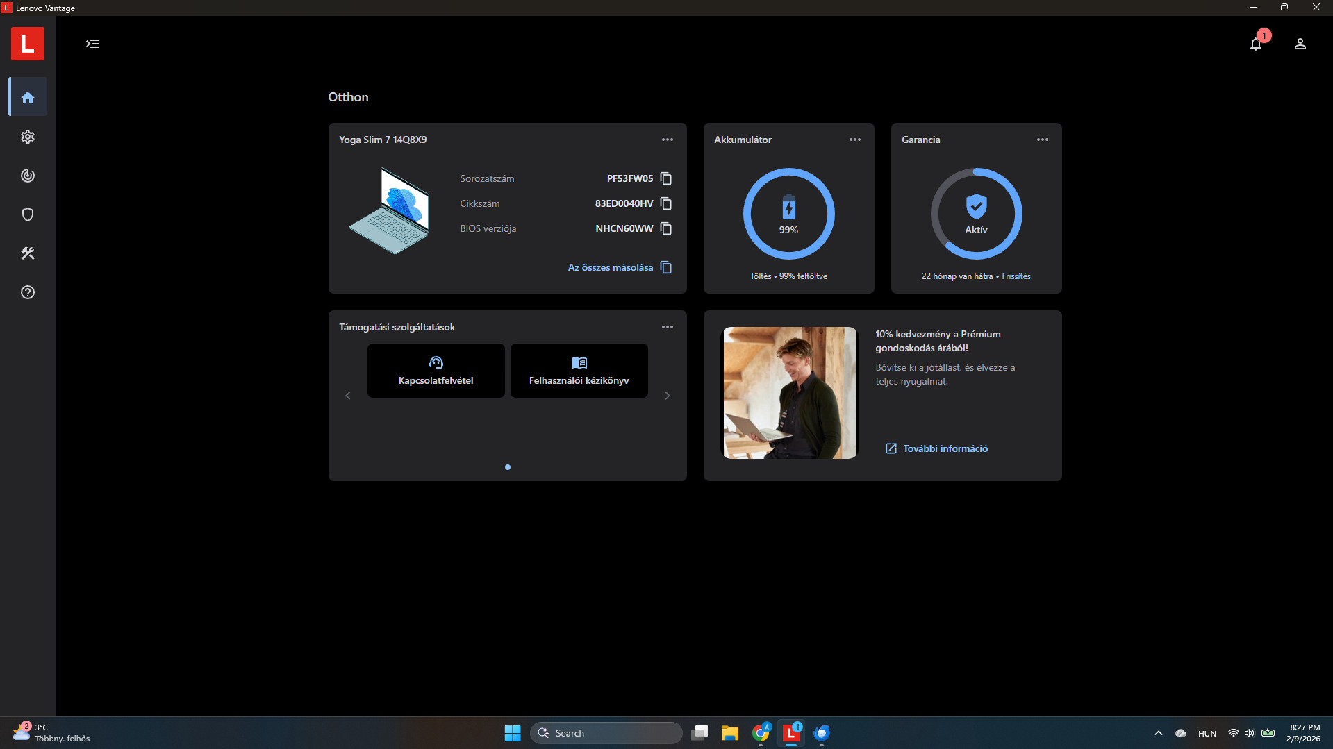 A legmagasabb szintű Lenovo garancia 2027 decemberig. (Premium Care)