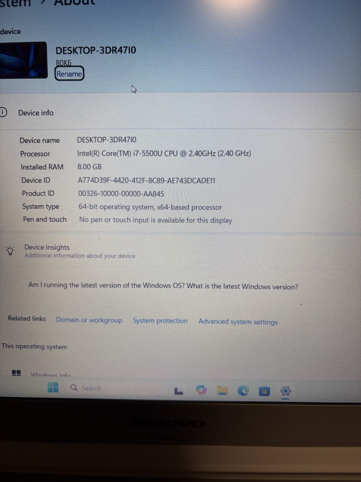 •Intel Core i7-5500U (2.40 GHz)