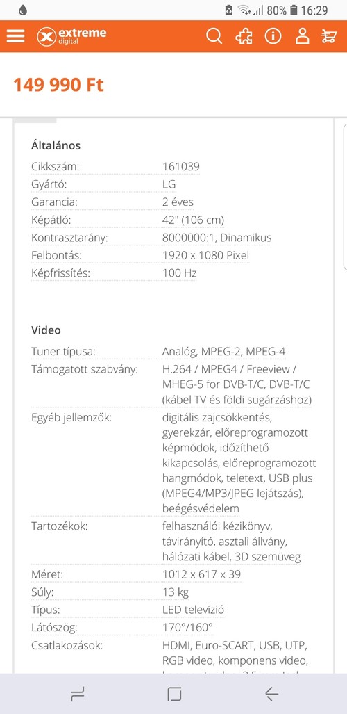 Eladó egy Lg 3D-s tv. A készülék hibátlan. A talpán apró karcok megtalálhatók. Nagxon szép tiszta képe van és a hangtása is tökéletes. A képekben van a bővebb leírása. Ajándékba adom a 3D-s szemüvegeket amik kb 2x lettek használva. Nem használjuk ezért eladó.