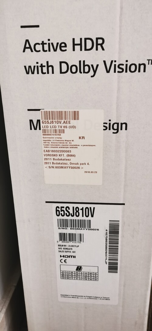 Eladó egy 164cm képátlójú 2 éves, keveset használt, fóliás, LG 65SJ810V 4K UHD NanoCell LED TV, dobozával.