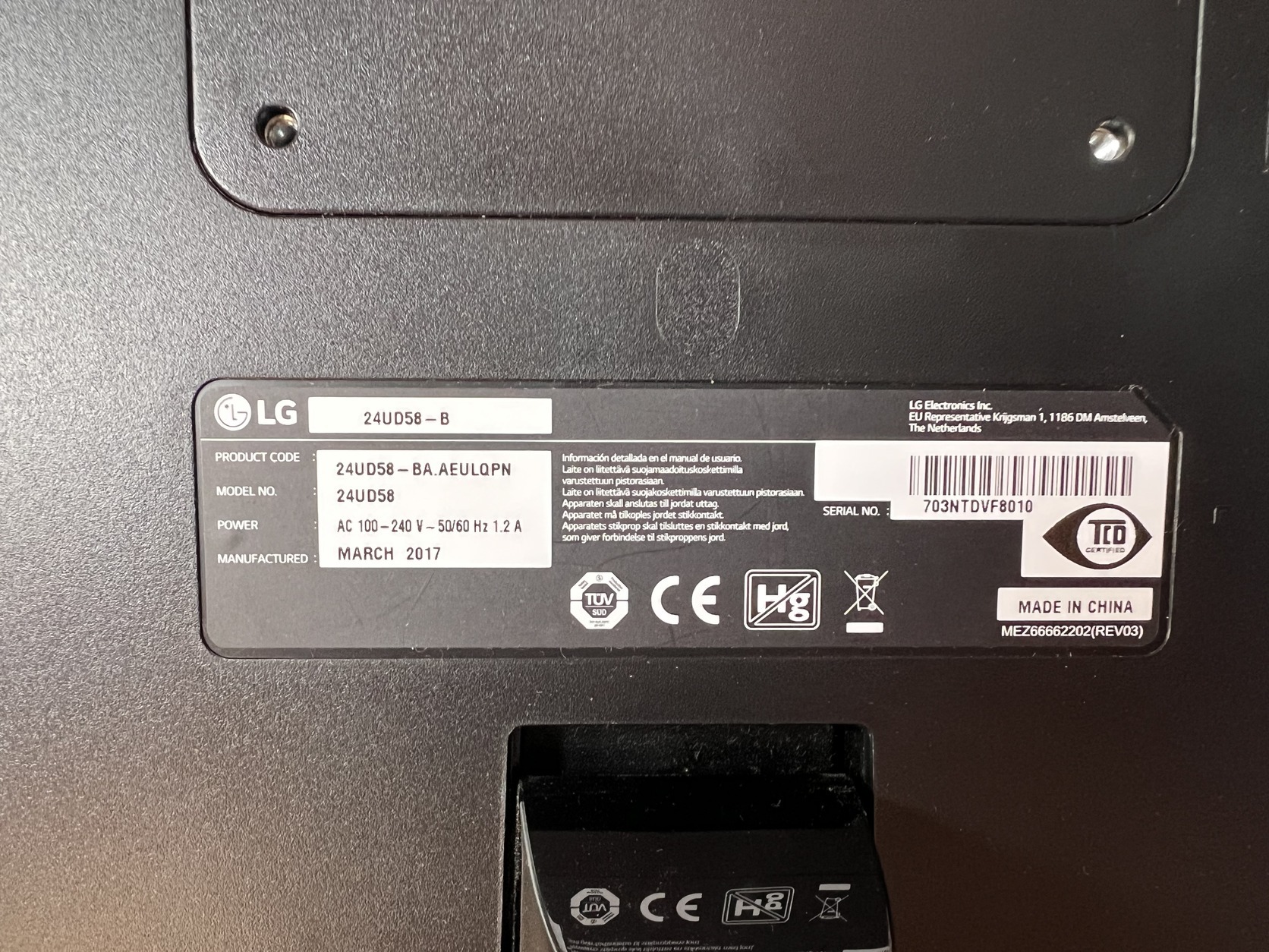 LG 24" 4K monitor (24UD58-B)