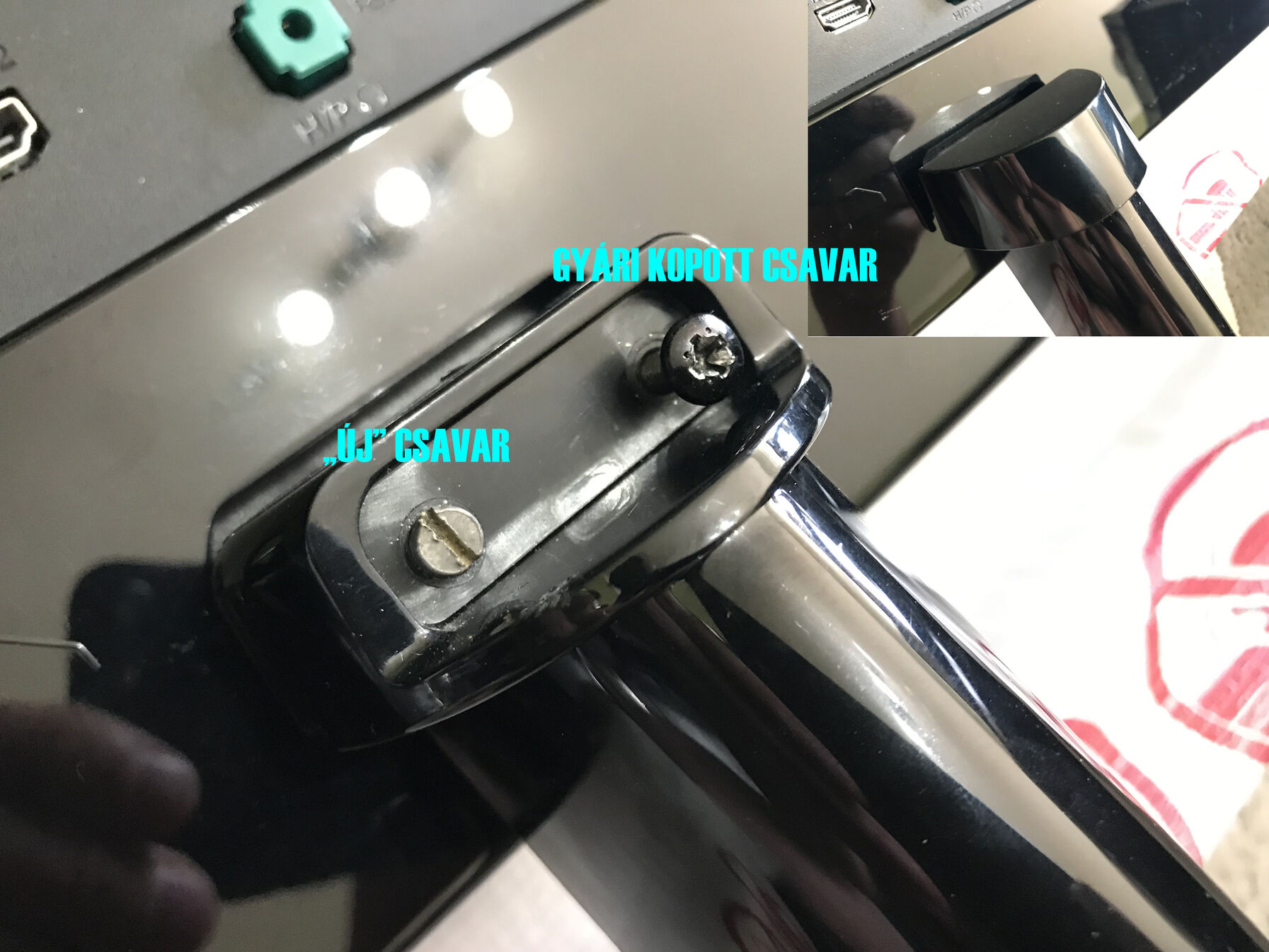 A talp rögzítő gyári csillagfejű csavarokat kicseréltem, mert túl puha anyagúak voltak és a fejük pár húzásra szétkopott. Sima fejű csavarok vannak a két csavar helyén, pontosan belevalóak. A csere nem látszik, mert a gyári takaró panel takarja. Kép alul hsz-ben róla.