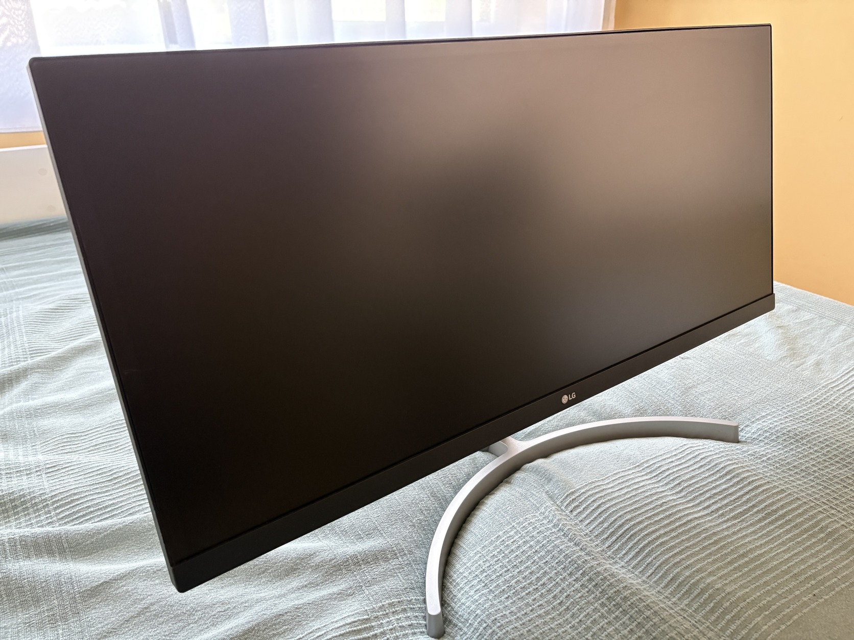 Eladó a képen látható 29"-os, fehér színű LG LG 29WK600 típusú monitor.
