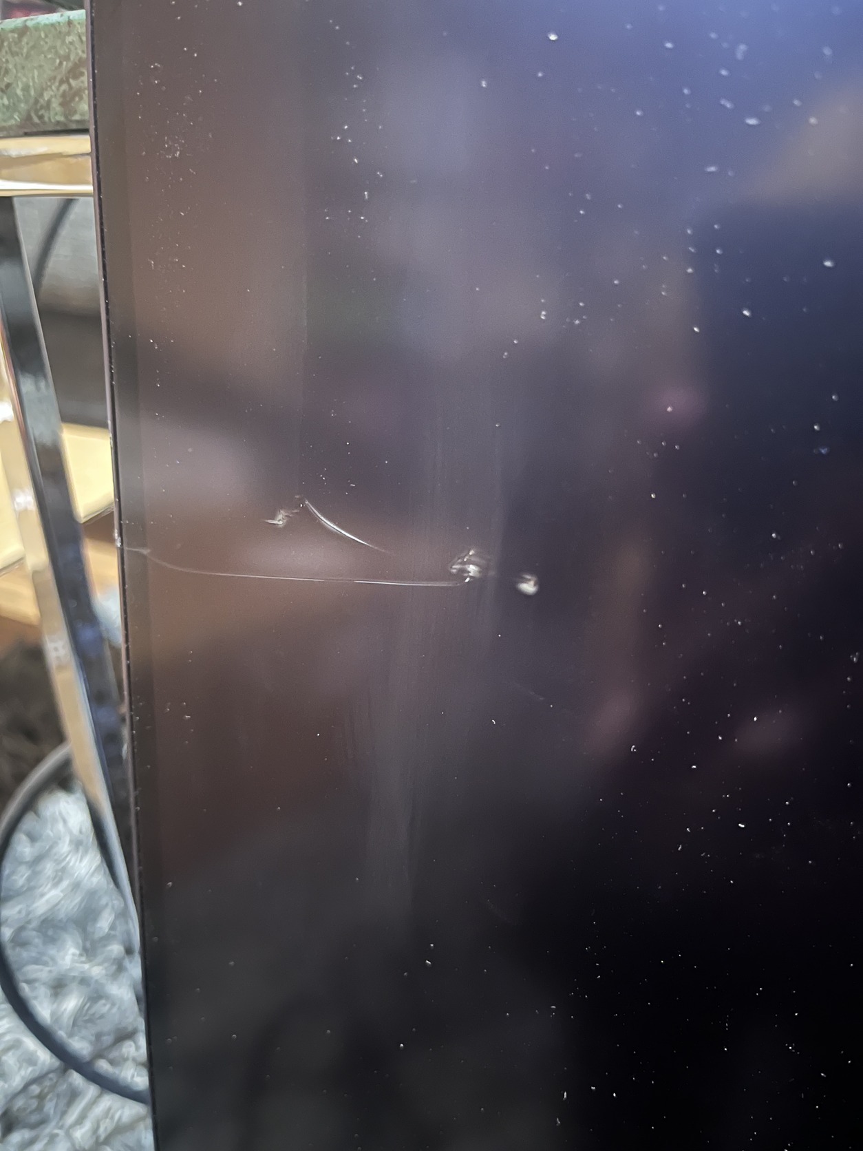 A csatolt képeken látszik a hibája, ami egy karc a monitor bal oldalán, de ez használat közben alig észrevehető.