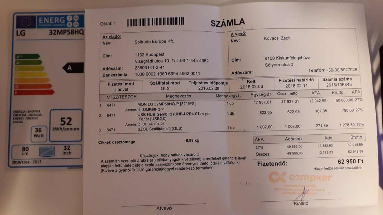 2018.02.08-án vásároltam a Compker-ből, tehát még 2021.02.08.-ig garanciális (36 hónap garancia). Gyári dobozában tartozékaival együtt adom.
