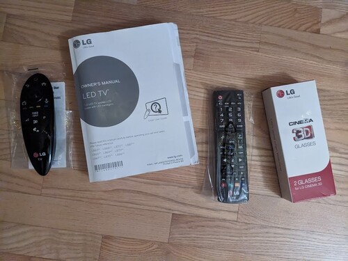 Megvan hozzá a doboza és minden tartozéka. A magyar nyelvű leírás, 2db távirányító (magic remote+normál), 2db passzív 3D szemüveg.