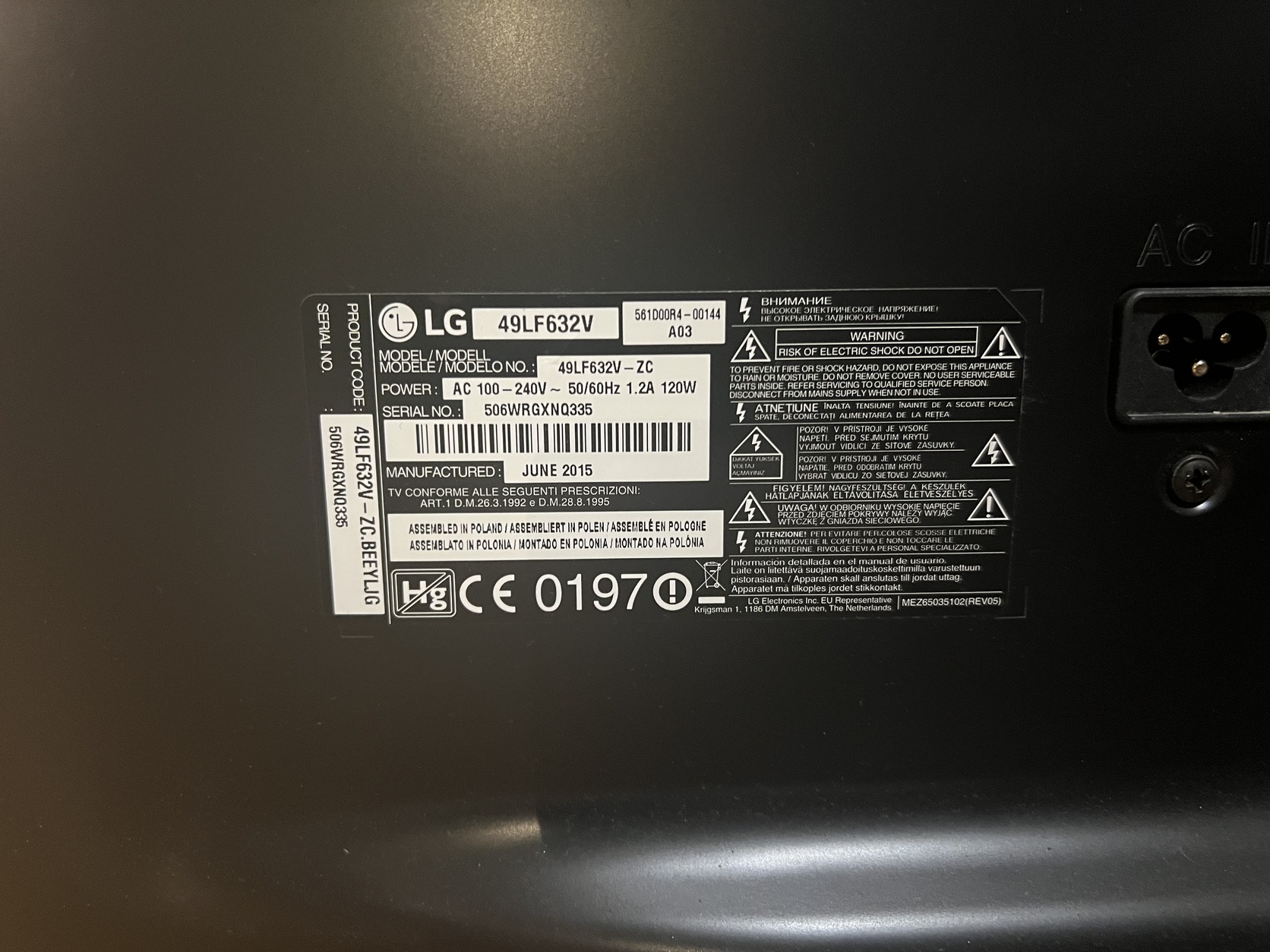 LG 49LF632V tv