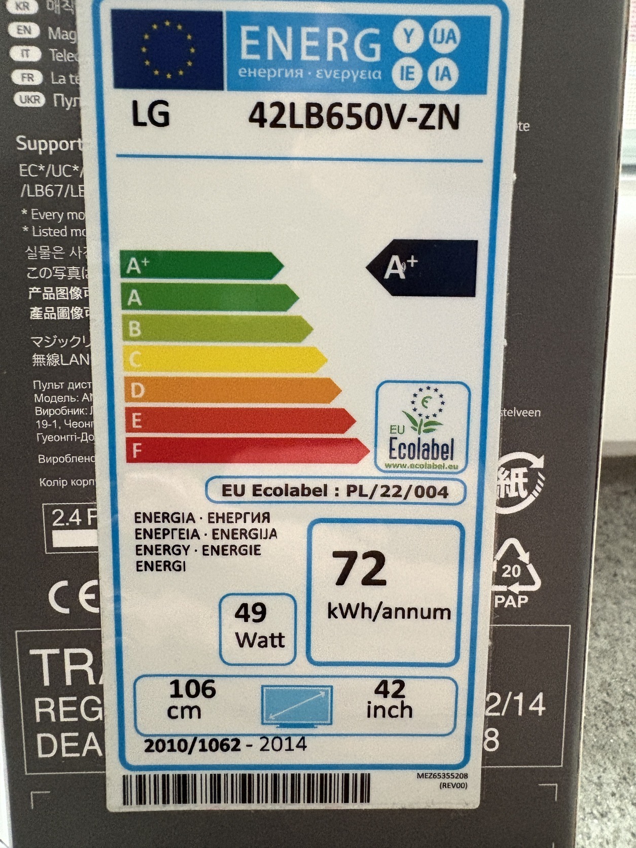 Az alábbi TV-vel használtam, LG 42LB650V-ZN; a TV adattábla a képek között fent van.