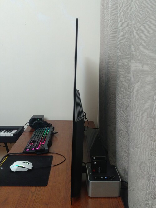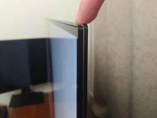 *A kijelző alján található egy 1,5cm hosszú hajszálnyi karc a felületen - ez a felhasználói élményt nem befolyásolja; tartalom nézése közben, illetve normál nézési távolságból sem észrevehető! (122cm széles a TV)