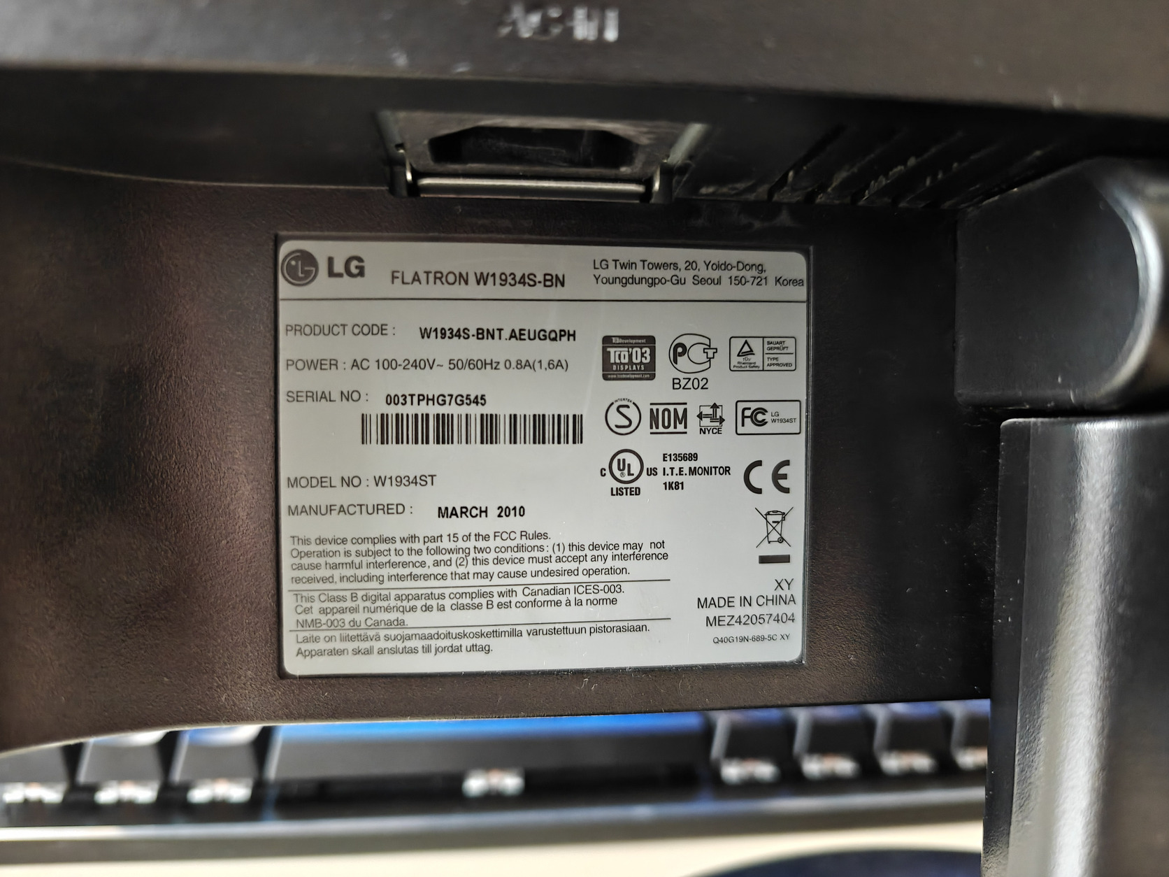 LG Flatron 19" LCD TN monitor (W1934S-BN)