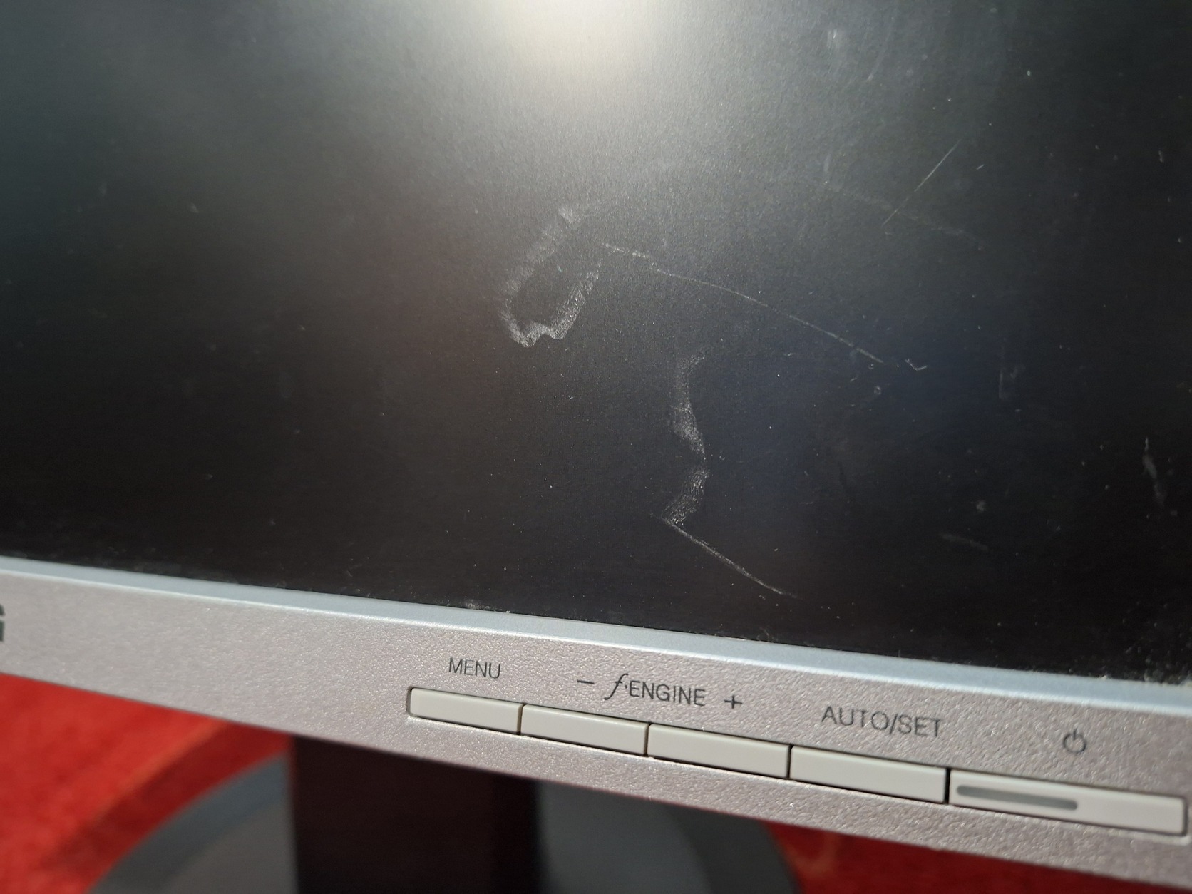 Panelhibás lehet, mert van rajta egy függőleges csík. Ezen felül vannak karcok a kijelző felületén.