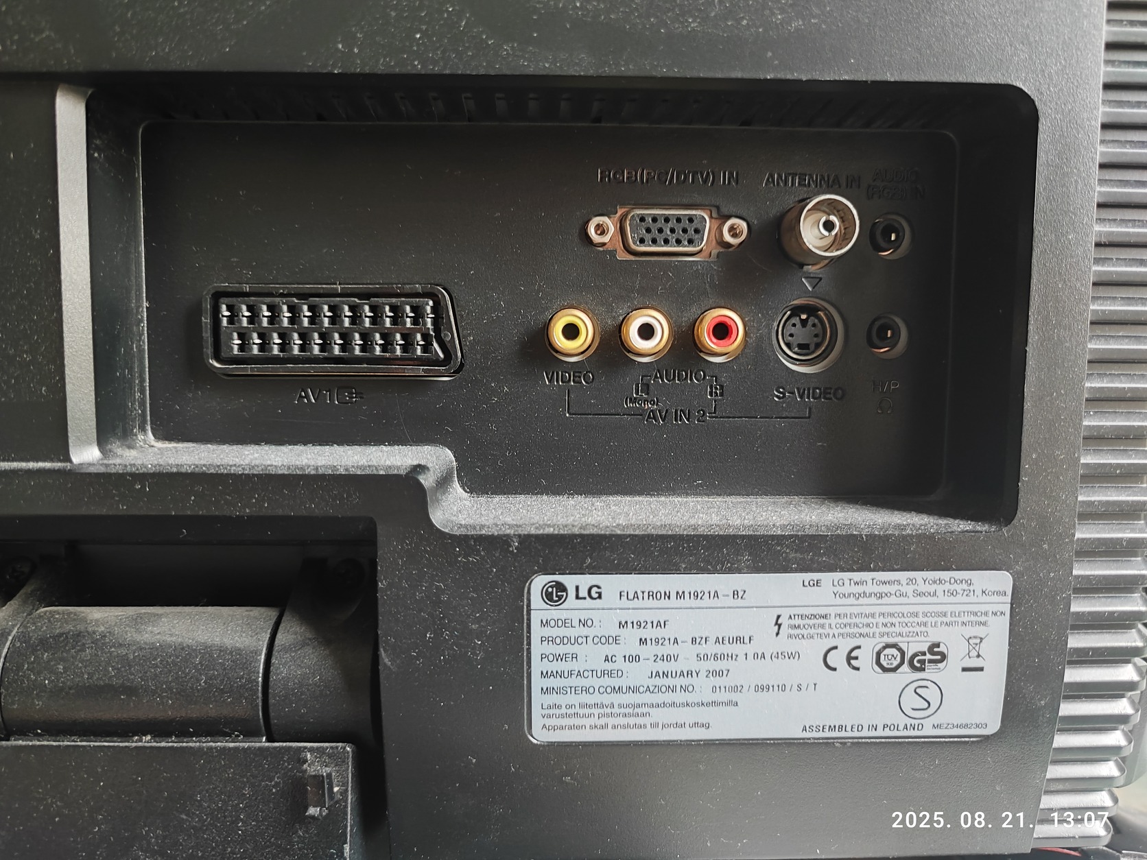 LG Flatron M1921A Monitor TV 19" (VGA/SCART/Composite/S-Video/1280x1024)