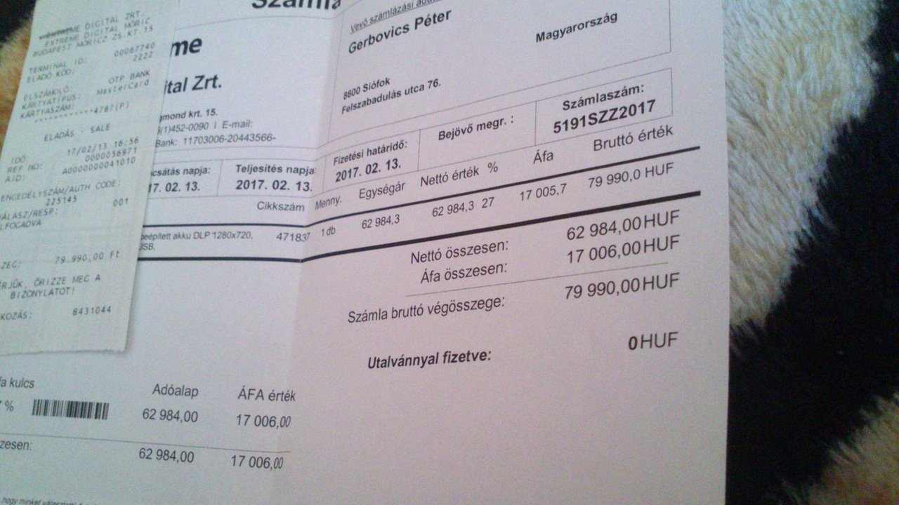 meg van a számla, blokk, lepecsételt garancia papír természetesen.