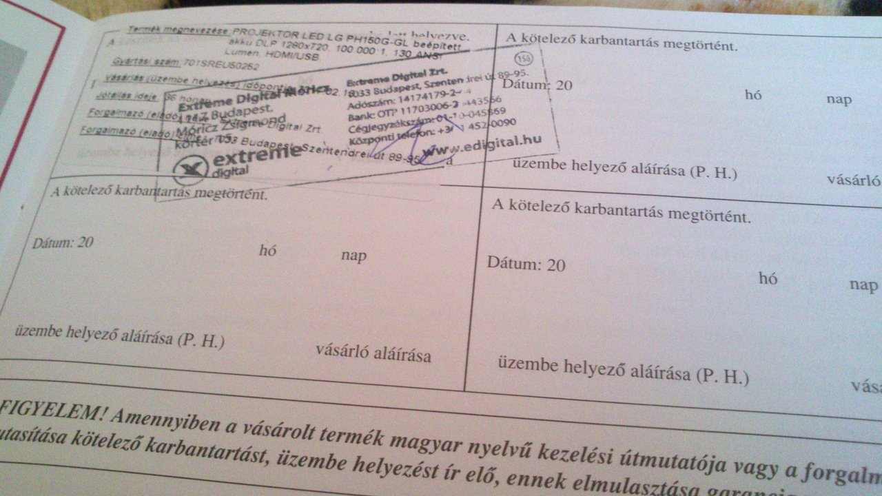 kis projektor.A készülék 2017.02.13.- ai vásárlású, garanciával, amiről
