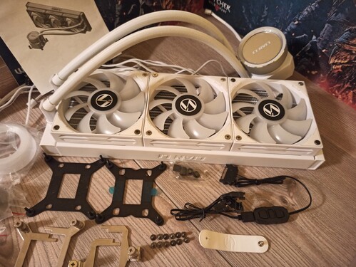 Jó pumpával , az eredeti ventik helyett a sima Galahad Argb veti van rajta. Sajnos az egyik ventin vacakol 2-3 led , de ha nincs váltogatva hanem egy színt világít folyamatossan akkor nincs vele baj.