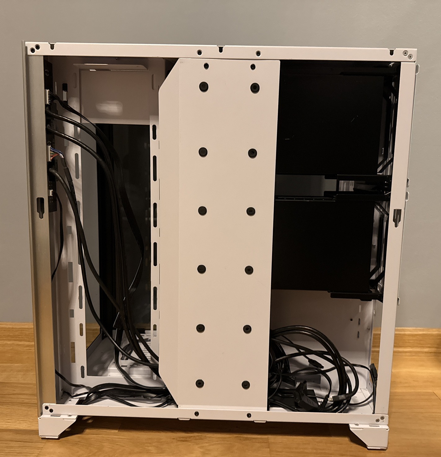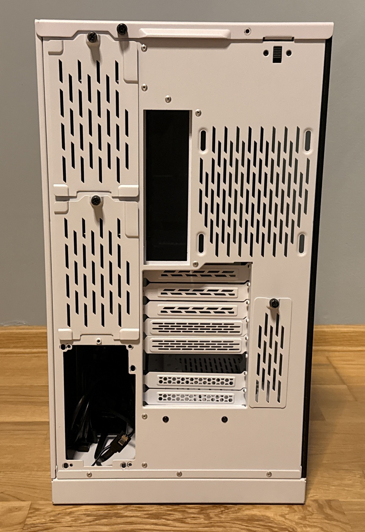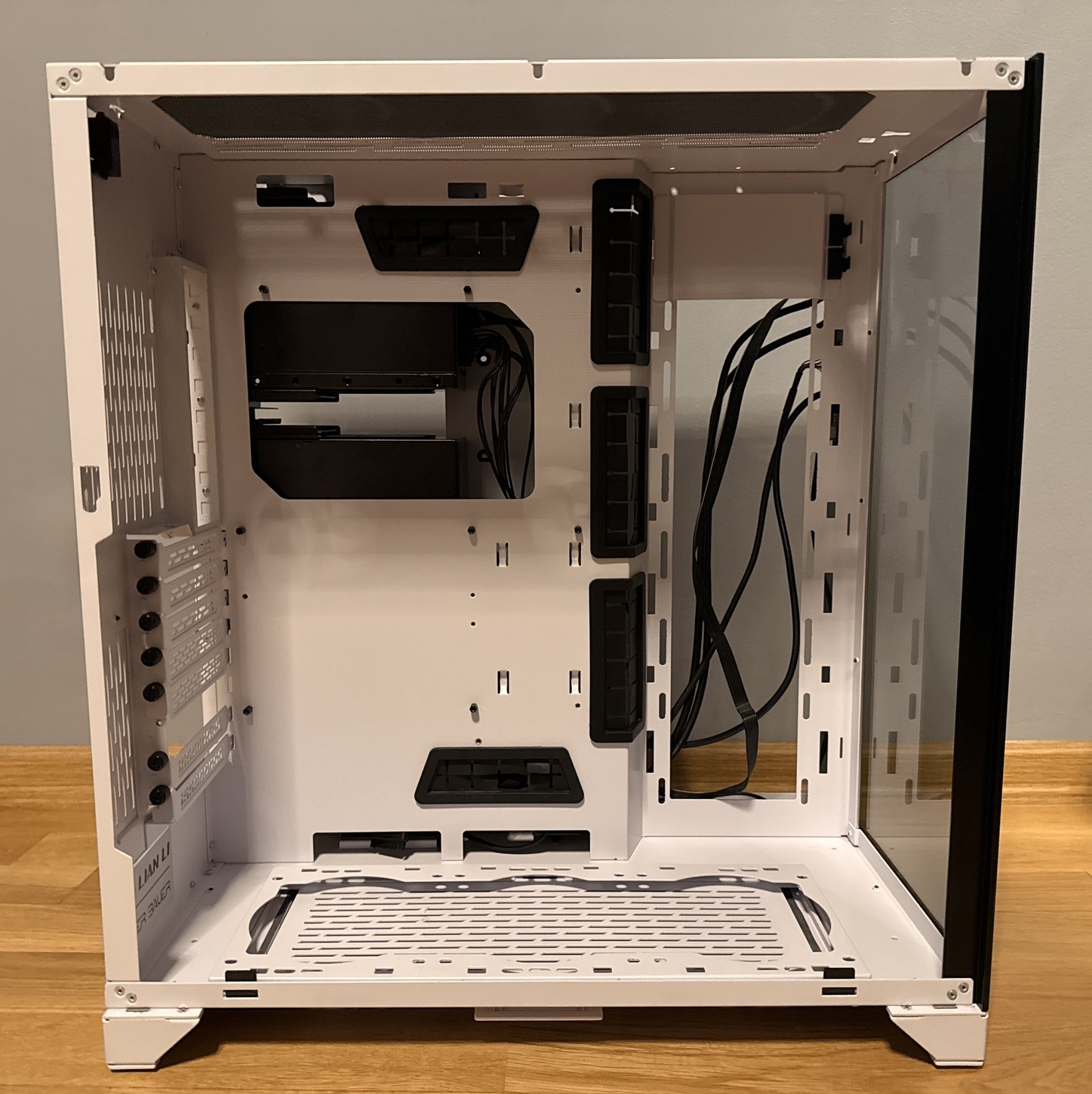 A ház alapvetően nagyon szép állapotban van, rendkívül masszív, minőségi darab, amely kiváló szellőzéssel rendelkezik. Az üvegpanelek karcmentesek és makulátlanok, az elülső RGB csík tökéletesen működik, és minden porszűrője megvan (az alsó kivehető szűrő is).