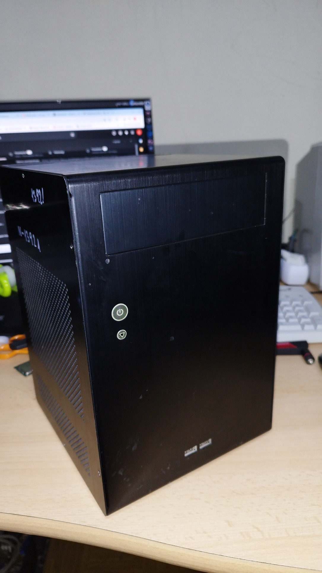Némi karc van rajta utolsó darab.Optikai meghajtó, tápegység nélkül - alul hdd-ssd lefogató benne van.Bekapcsoló, reset gomb hibátlan.