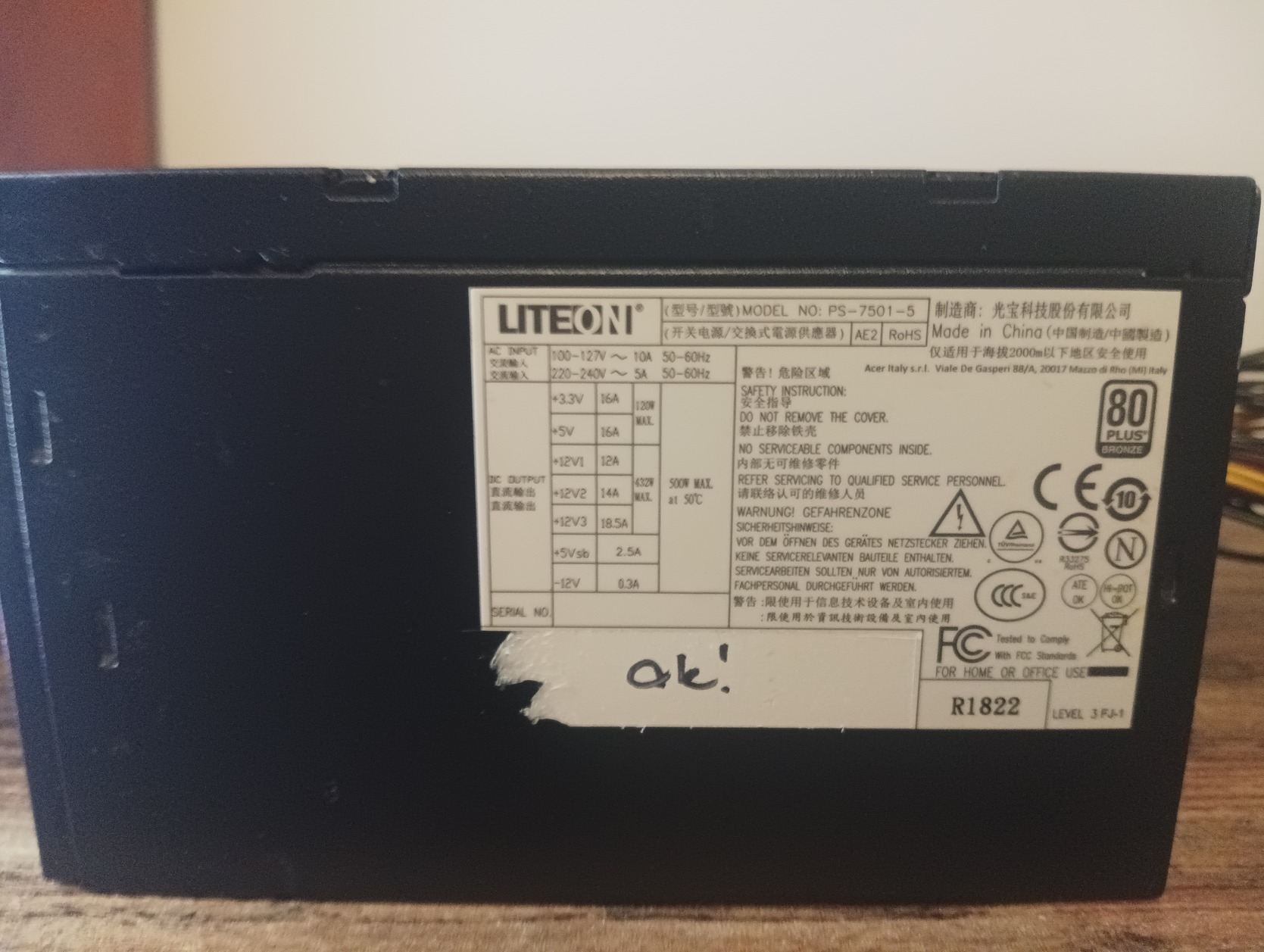 Lite-On PS-7501-5 500W (80+ Bronze)