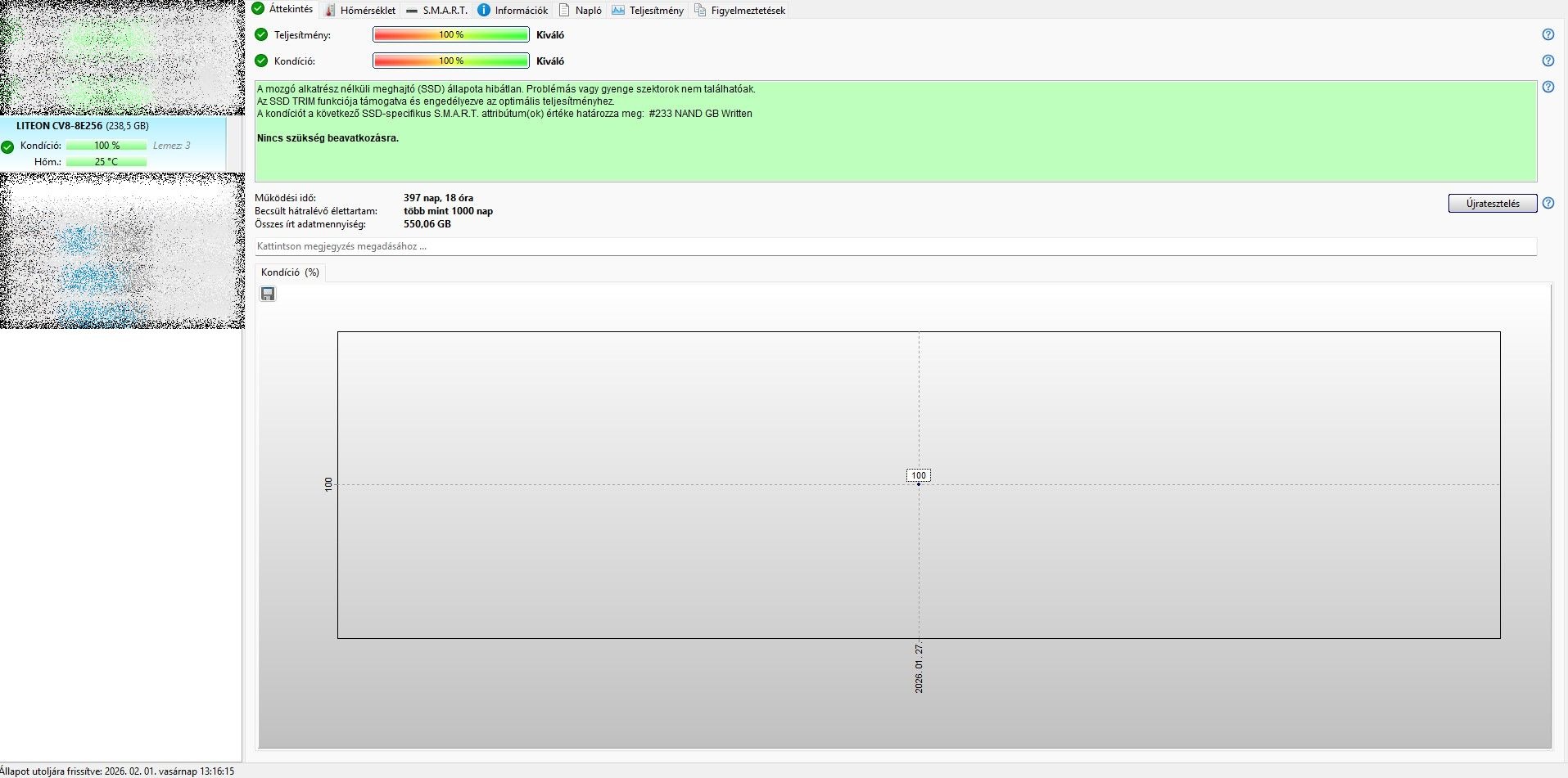 eladó képen látható 100%-os SSD