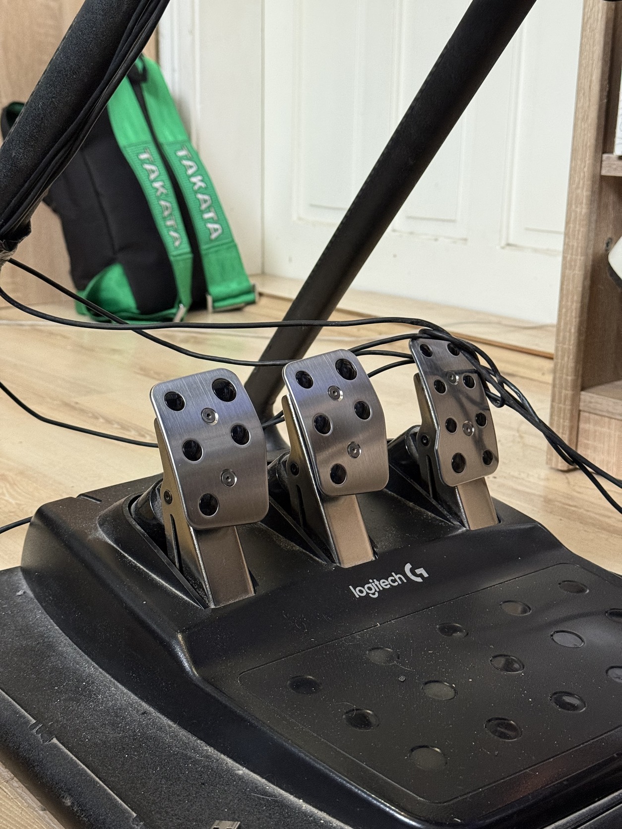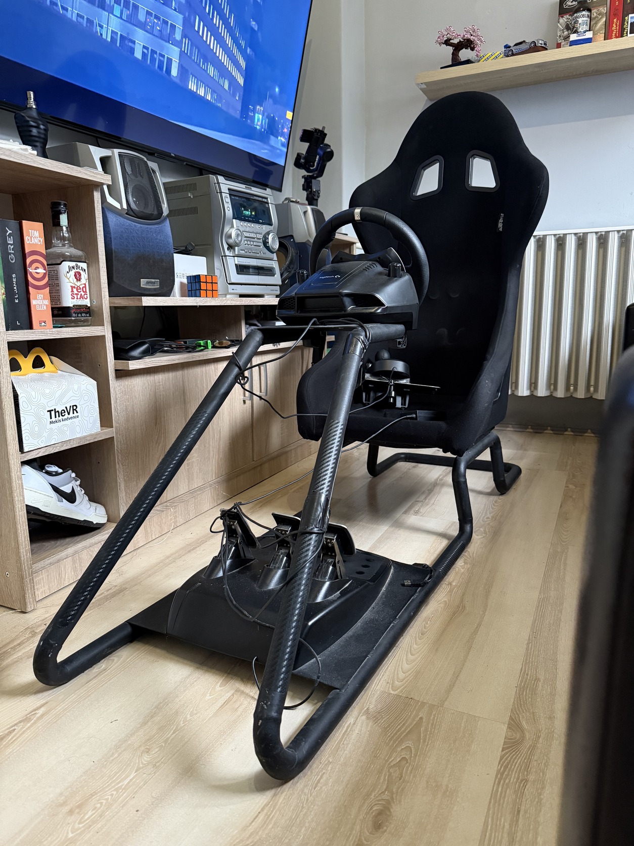 Eladó a képen látható Logitech G920 kormány, pedál, váltó és ülés.