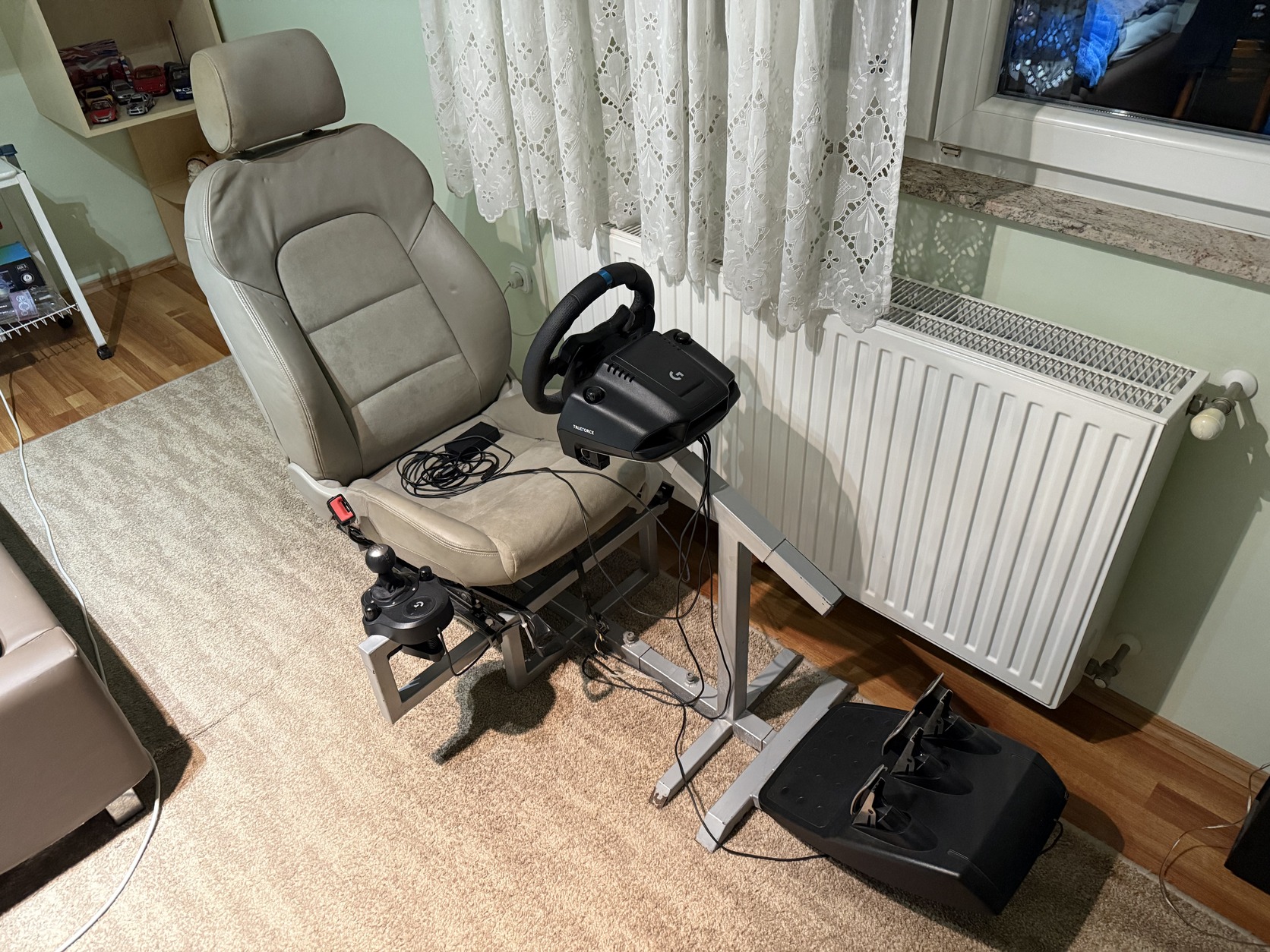 Eladó a képeken látható szimulátor! G923-ban nagyjából 100óra játékidő van. A cockpit egyedi készítésű, zártszelvényből, állítható, az ülés Audi A3 8P S-Line félbőr/alcantara! Kipróbálható! Csak személyes átvétel, szállításban nem tudok segíteni! Külön-külön is megvásárolható