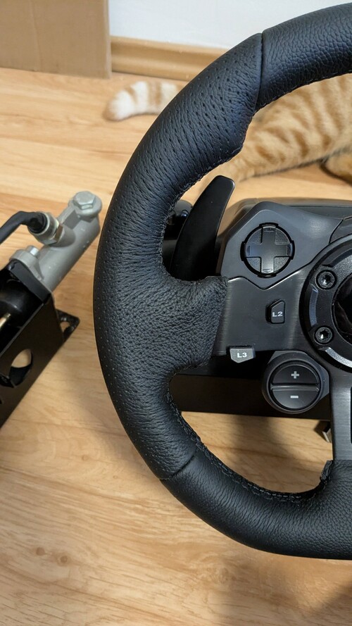 A kézifék egy jack dugóval csatlakozik a kormányhoz és gombként kezeli, így PS-en is lehet használni.