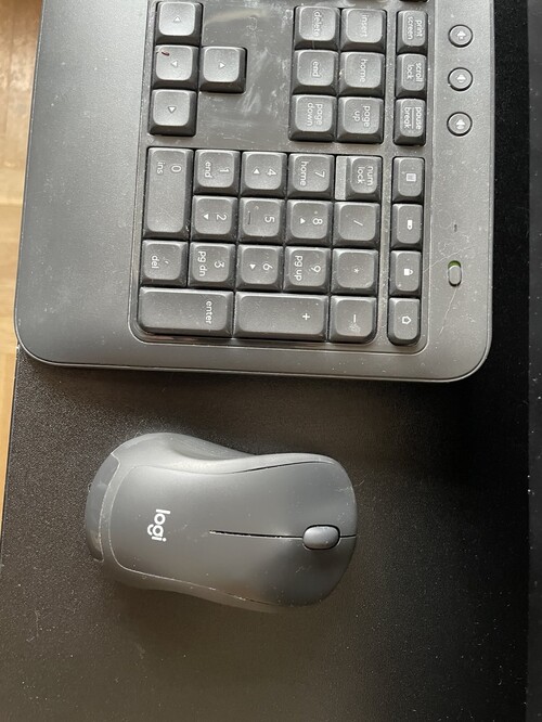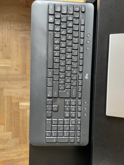 A vezeték nélküli billentyűzet és egér egyetlen USB jeladóval kapcsolódik a számítógéphez (stabilabb, mint a Bluetooth).