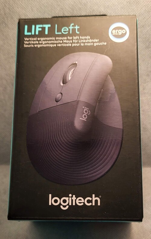 Alig használt Logitech Lift Left balkezes ergonomikus egér gyári dobozában minden tartozékával.