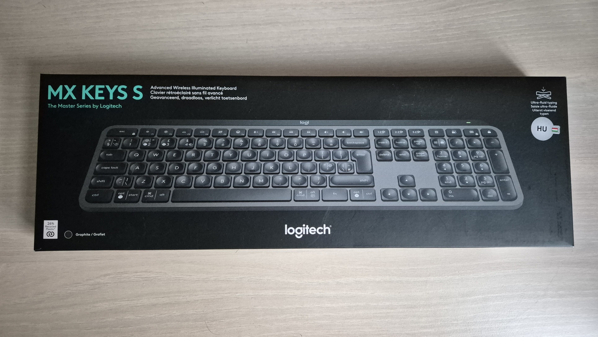 Logitech MX Keys S vezeték nélküli Bluetooth billentyűzet MAGYAR, grafitszürke