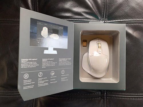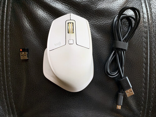 Használt, de szép állapotban lévő MX Master 2S, gyári dobozával és összes tartozékával (unifying stick-kel és töltőkábellel).