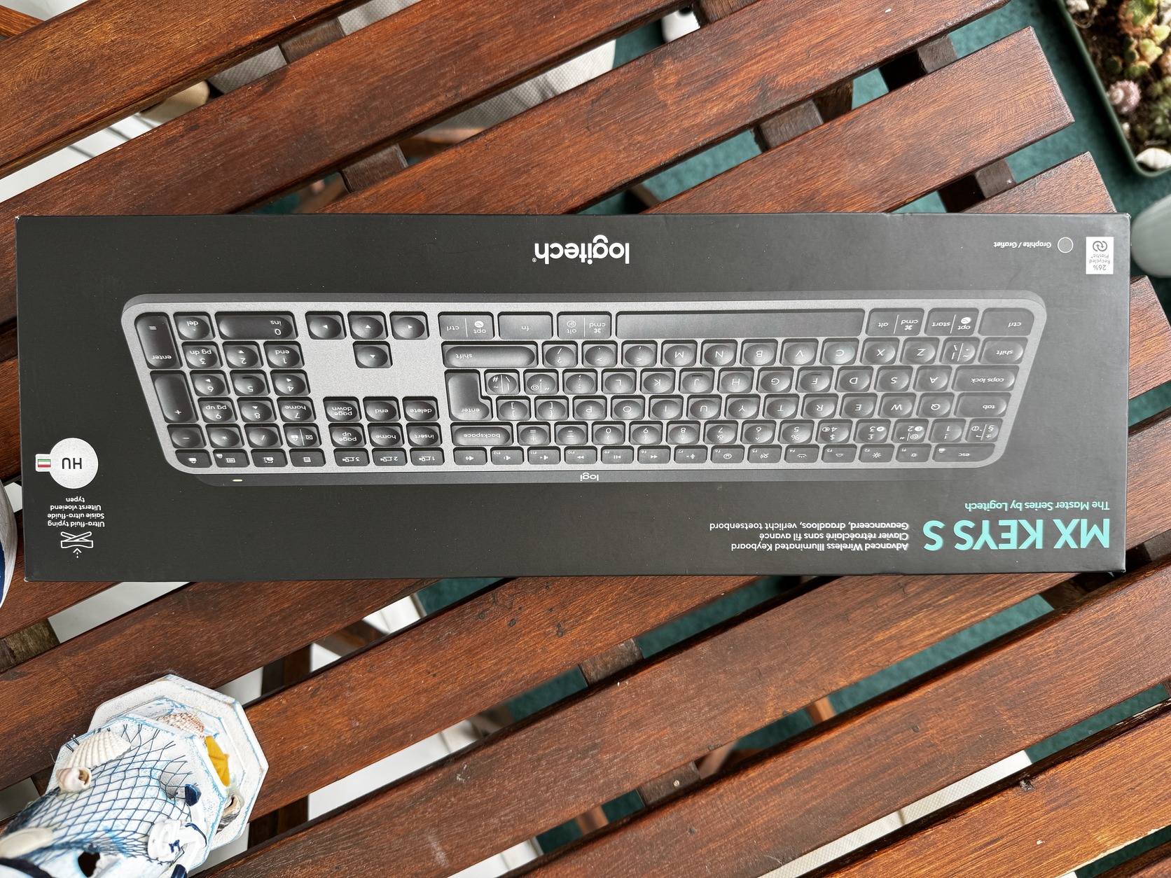 Jár hozzá a doboza, számlája (így idén decemberig még garanciális) és a Logitech Unifiying vevőegysége is.