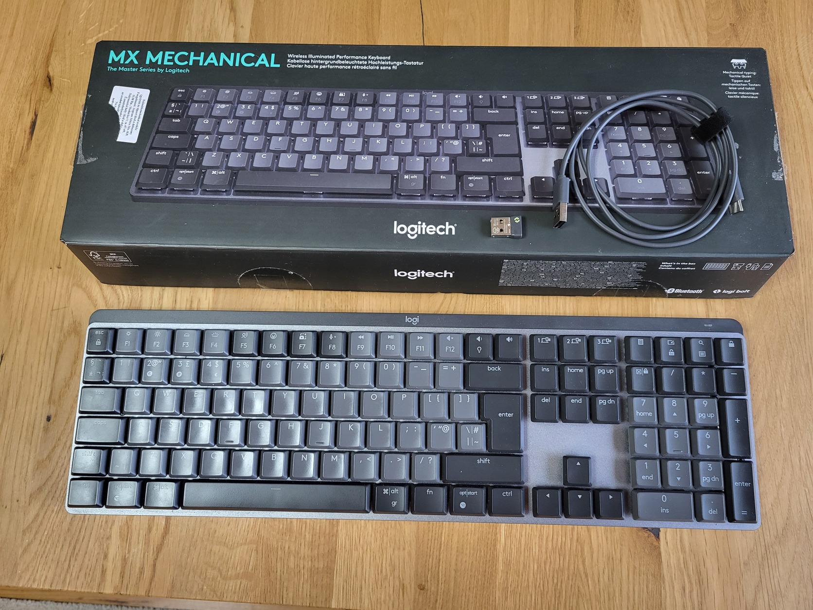 Képen látható Logitech MX Mechanical billentyűzet, keveset használt, mint az új, dobozában, tartozékaival.
