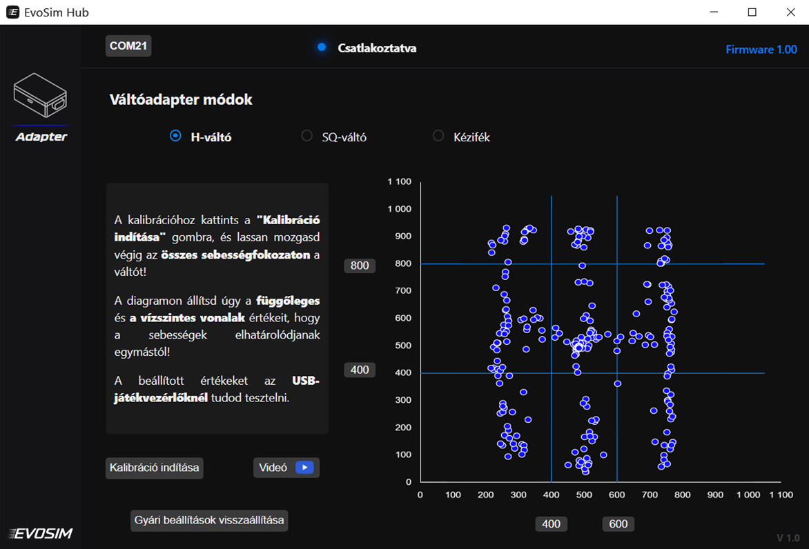 Egyszerű kalibrálás az EvoSim HUB szoftverrel.