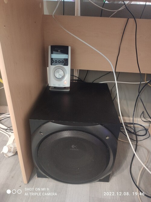 Eladó Logitech z 5500 összes hangszóró, mélynyomó vezérlő és távirányító jól működik és megvan. Hibák a center lába el van deformálódva tökéletesen szól, mély láda elején gondolom a rács leszedése miatt csavarhúzó nyomos az éle fotózva vannak. Na és a fő probléma bal első kimeneten nincs hang az összes többinél tökéletes.