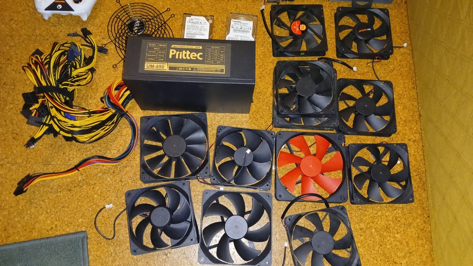 12db ventilátor, tápokból lettek bontva, csatlakozóval 500,-/db850W Prittec táp, olyan hangos, mint egy SZU-22 vadászgép, 5000,-