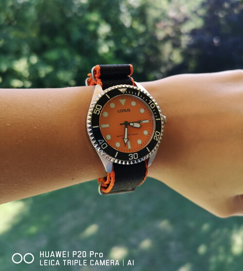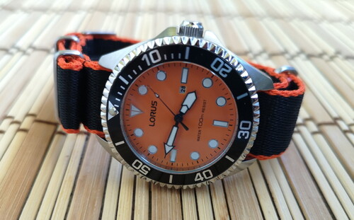 Keveset hordott narancs számlapos Lorus 100M (Seiko csoport tagja) karóra eladó.